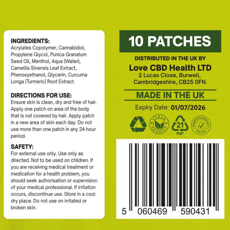 As well as being cannabinoid-rich, each patch contains turmeric root, pomegranate oil, and green tea which have proven anti inflammatory properties.