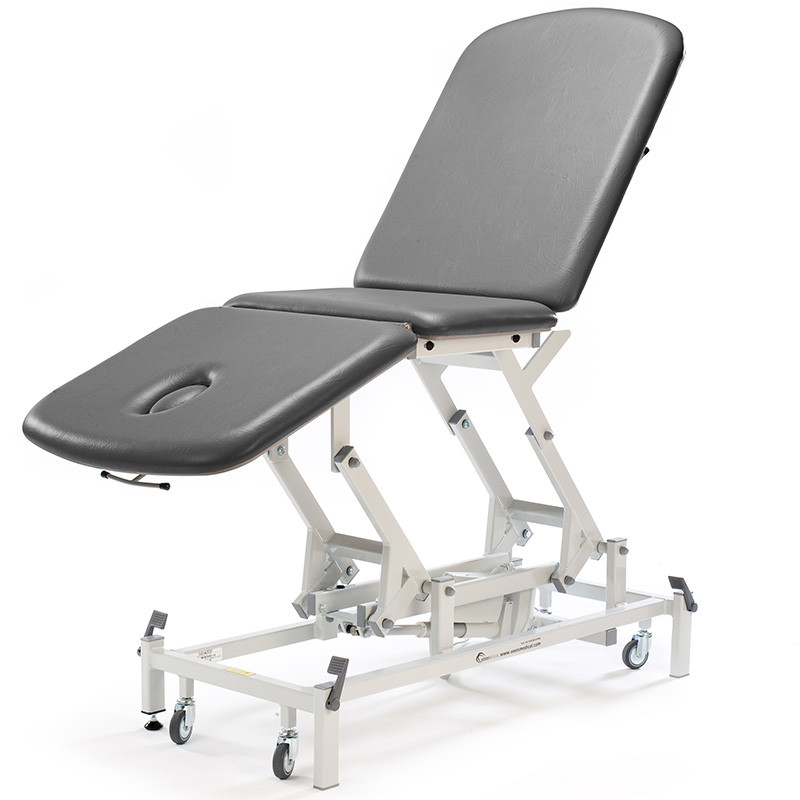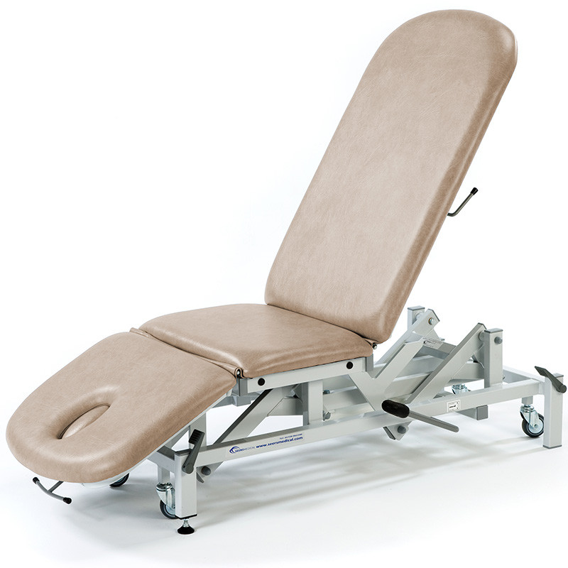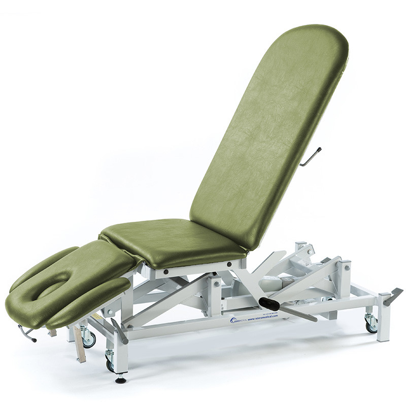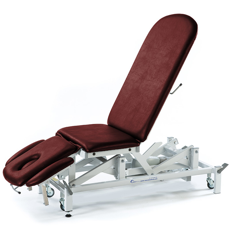 A very strong and rigid 3 section couch with a traditionally long head section to suit a wide range of physiotherapy and general examination procedures. The couch can be adjusted to provide support for the patient in prone, supine and seated positions.