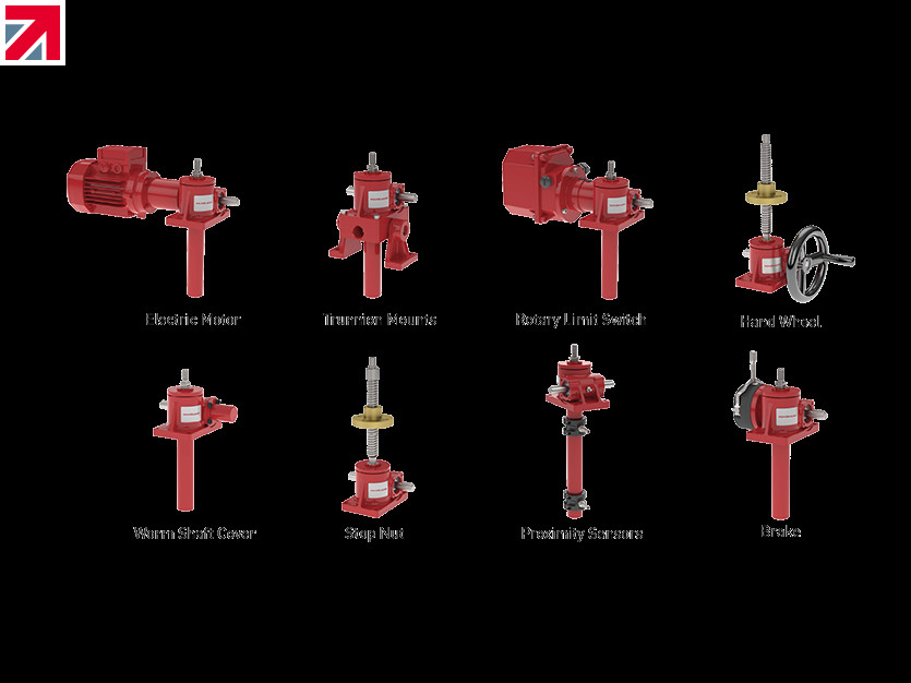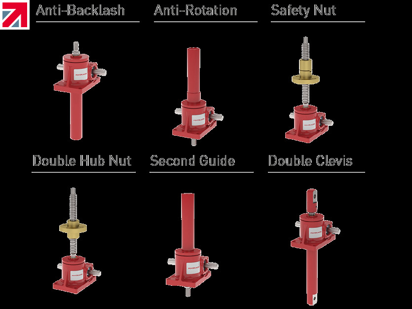 The new screw jack also benefits from Power Jacks extensive modular building system for screw jacks allowing extensive customisation. Examples of some assemblies featuring “bolt-on” accessories are shown below.