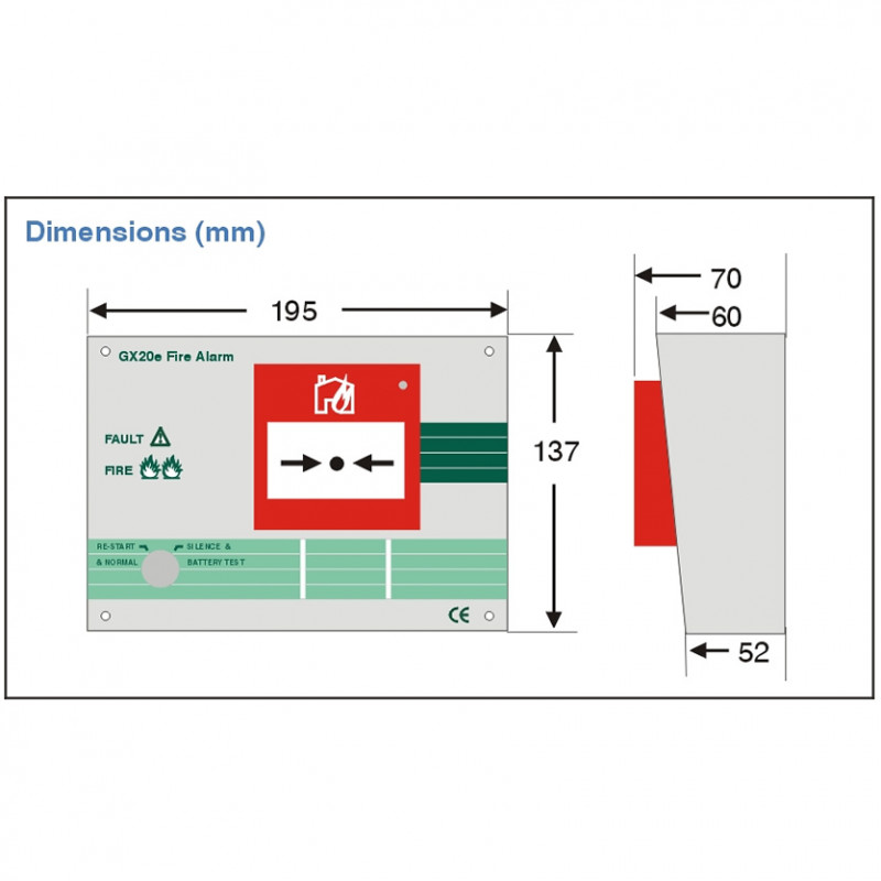 Please Note: It is not possible to install additional individual call points or sounders. The GX20e does NOT take smoke or heat detectors. For larger systems where callpoints and sounders must be interconnected or there is a requirement for smoke detectors we would recommend our GX32 system.