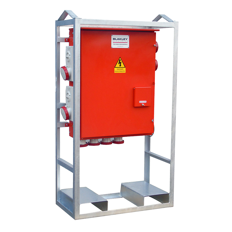 Blakley Electrics manufacture a range of standard mains voltage site distribution assemblies, rated from 100A to 4000A complete with a range of incoming and outgoing switchgear.
