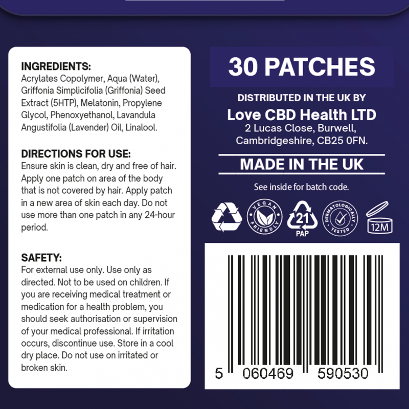 Love CBD Sleep Patches with Melatonin and 5HTP have been designed to help promote good sleep. Containing Melatonin, 5HTP, Lavender and Linalool, each sleep patch contains high quality ingredients that are proven to be an effective way to gain a restful night. Anyone that suffers from poor sleep quality, waking up throughout the night, just not getting enough shut eye knows how debilitating this can be.